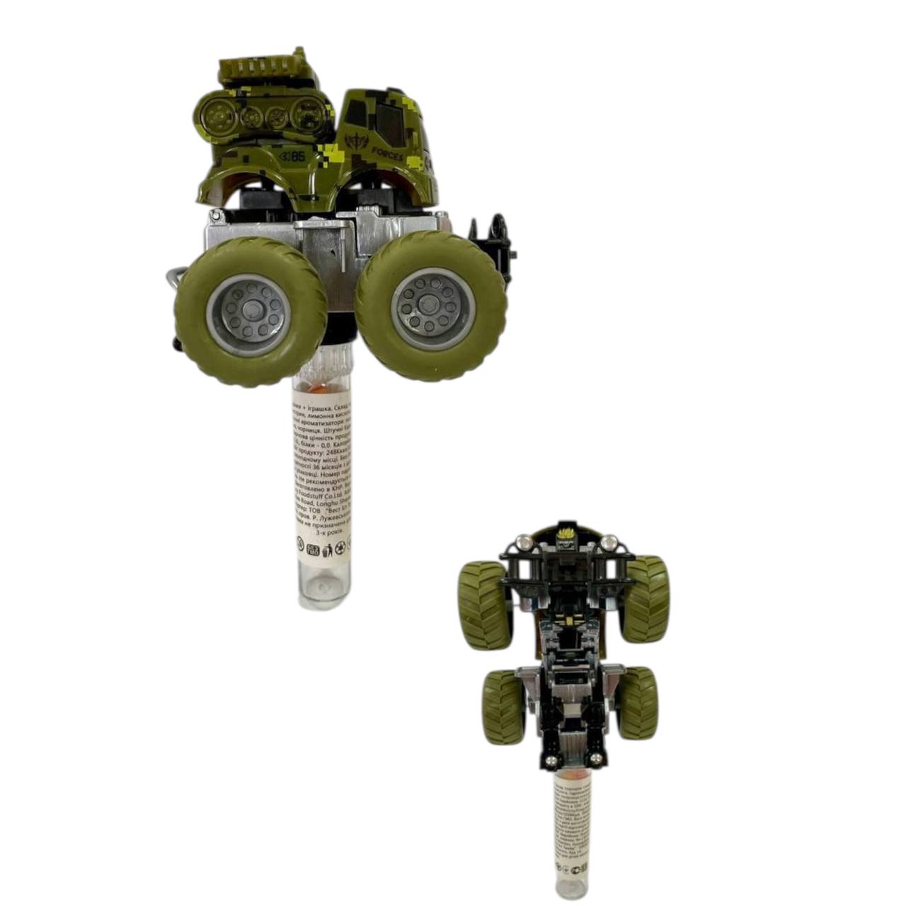 Кожна машинка виконана у військовому стилі з реалістичними деталями, що неодмінно зацікавлять дітей. Усередині кожної іграшки заховано смачне фруктове драже, яке додає грі ще більше радості.