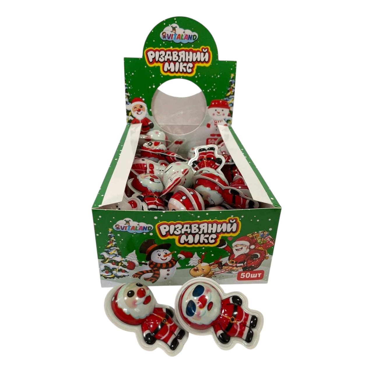 Різдвяний мікс – це смачні та яскраві желейні фігурки у формі новорічного Санти з рідким центром. Усередині – ніжний фруктовий джем, який створює приємний смаковий ефект та дарує відчуття справжнього святкового настрою!