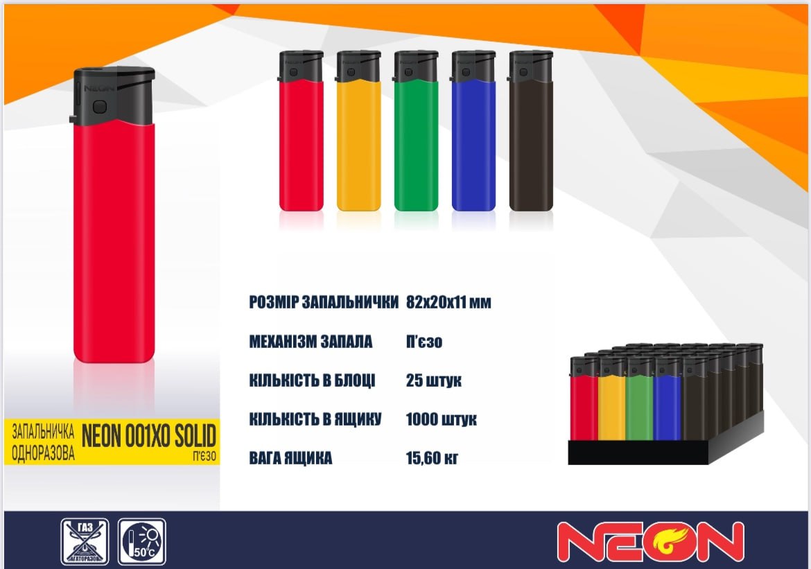 Одноразова газова запальничка NEON 001XO Solid — проста, надійна та зручна у використанні.